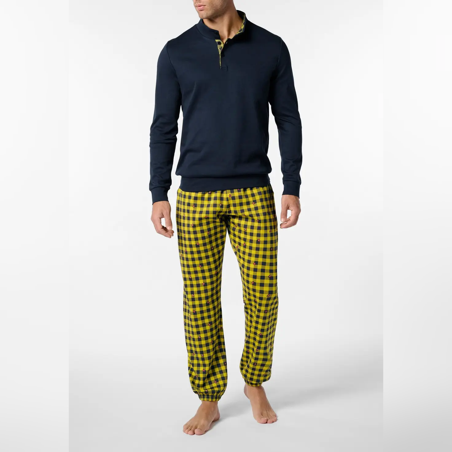Pigiama uomo Perofil lungo in caldo cotone lupetto con bottoni e pantalone fantasia quadri